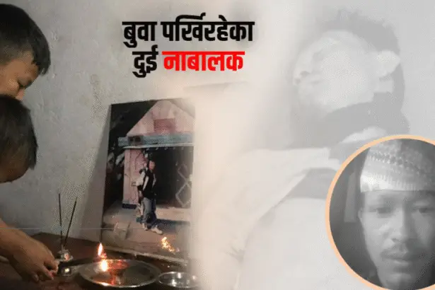२८ भदौ, काठमाडौं । भक्तपुर ठिमीको एक साँघुरो कोठा । ५ र १२ वर्षका दुई बालक थालमा राखेको एउटा दियोमा तेल थपिरहेका छन् । धुप बालिरहेका छन् । अगाडिपट्टी बुवाको फोटो छ । दियोमा तेल सकिएर निभ्न लागेपछि दाजुभाई फेरि त्यहाँ तेल थप्न पुग्छन् । आफन्तले आत्माको शान्तिका लागि दियो बालिदिएका छन् । किन यसो गरिएको हो उनीहरुलाई थाहा छैन । १२ वर्षका बालकलाई चाहिँ बुवालाई गोली हानेका छन् भनेर कसैले सुनाई दिएको छ । गोली लागेको बुवाको अवस्था के…